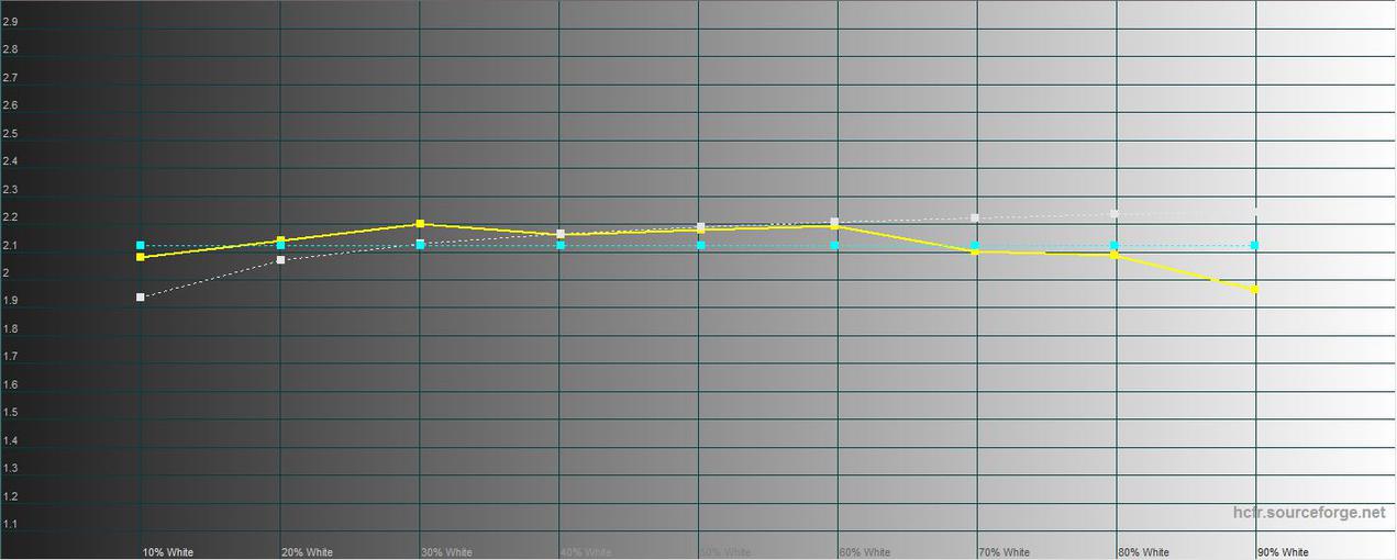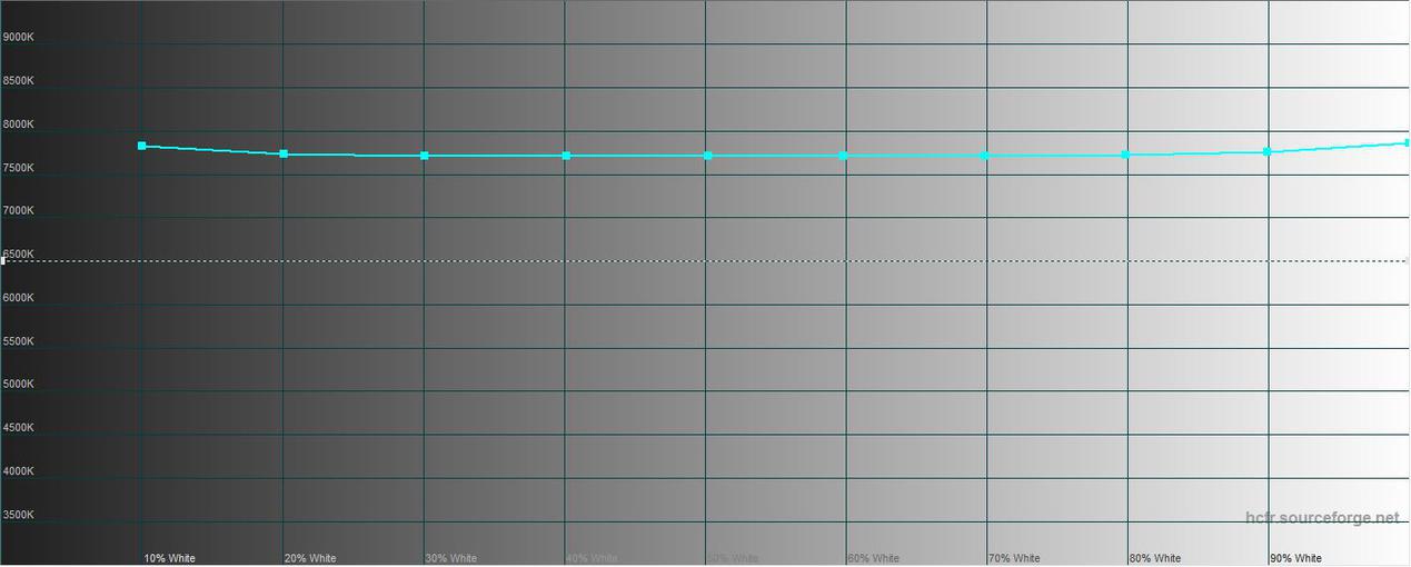 Замеры с помощью колориметра показали весьма неплохой, как для ноутбука запас яркости 285.328 кд/м2. Яркость черного поля — 0.364 кд/м2, а контрастность — 784:1. Калибровка не идеальна, но очень и очень неплохая: погрешность ΔE колеблется от 0 до 8, экран чуть холодит, имеется небольшой недостаток красного и минимальный переизбыток синего цветовая температура — 7500K до 8000K: