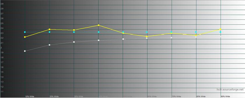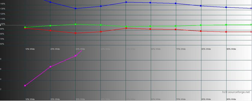 Исходя из замеров с помощью колориметра, смартфон получил чуть скромнее экран, чем у предшественника (это касается яркости и контрастности). Максимальная яркость составляет 384.666 кд/м2, яркость черного поля 0.442 кд/м2, контрастность: 870:1, сравнение — ниже в таблице. Что касается калибровки, то экраны очень схожи, оба уходят в холодные тона, есть ощутимый перебор синего: