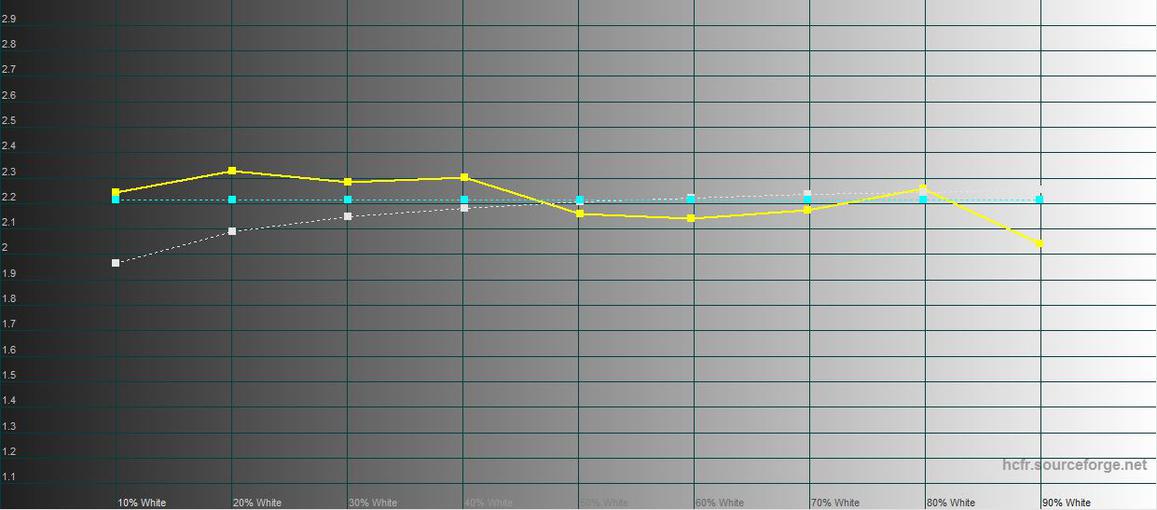 Как можно увидеть на графиках ниже, есть существенный переизбыток синего и соизмеримый недостаток красного, в результате картинка холодная. Тепловая температура — около 9450K при эталоне 6500K: