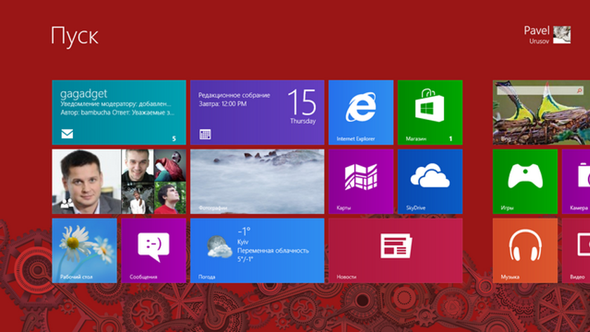 В целом, несмотря на непривычность, интерфейс Metro удобен, особенно если целенаправленно потратить 15 минут на его освоение. Практически все основные функции вызываются жестами. Например, если провести пальцем от правого края экрана к центру, то вы увидите так называемую Charms Bar — на ней отображается виртуальная кнопка «Пуск», а также ярлык для доступа к магазину приложений и кнопки «Поиск» и «Настройки». При этом поиск и настройки являются контекстными и вызывают соответствующие опции для активного в данный момент приложения.
