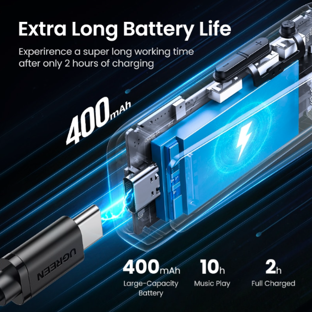 Речь пойдёт о Bluetooth-приёмник Ugreen. С помощью него можно сделать любые проводные наушники беспроводными. Устройство работает по Bluetooth 5.0 и может похвастаться наличием ЦАП, а также поддержкой кодеков aptX, aptX HD, AAC, SBC и низкой задержкой звука (менее 40 мс). У гаджета есть NFC-модуль для быстрого сопряжения и микрофон для разговоров. Питается устройство от аккумулятора на 400 мАч. Он заряжается через порт USB-C. Что касается автономности, то её хватит до 10 часов прослушивания музыки.