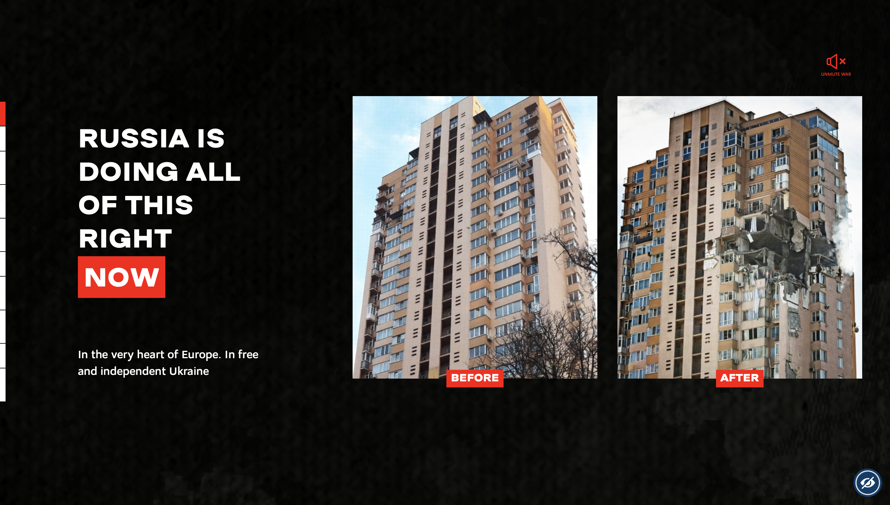 На сайте задокументированы военные преступления, совершенные русской армией в Украине за время полномасштабного вторжения с 24 февраля 2022 года. Преступления разделены на 7 категорий: убийство невинных, нападения на гражданское население или гражданские объекты, разрушение населенных пунктов, заложники и пытки, незаконная депортация, нападение на религию и культуру, а также изнасилование.