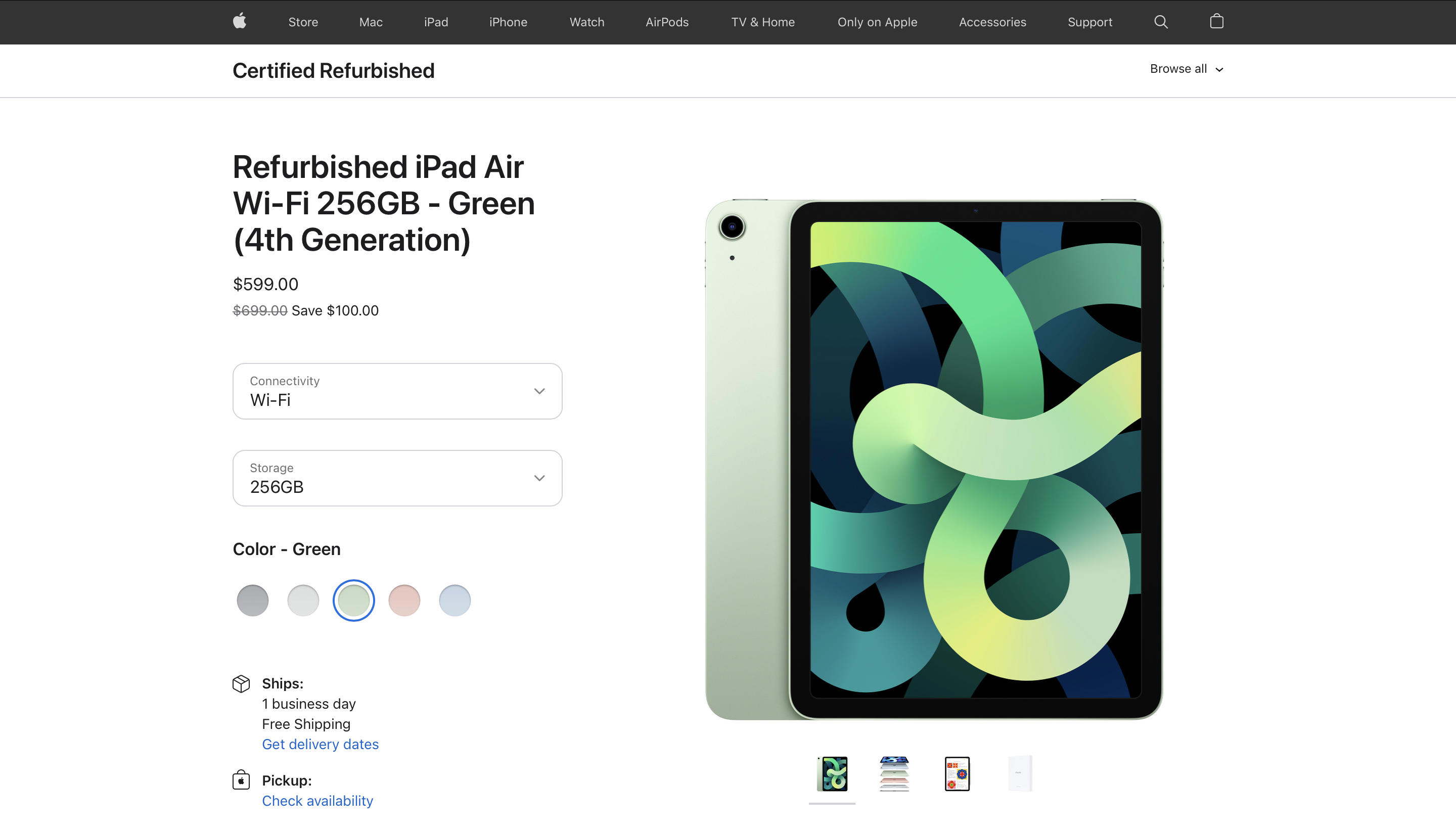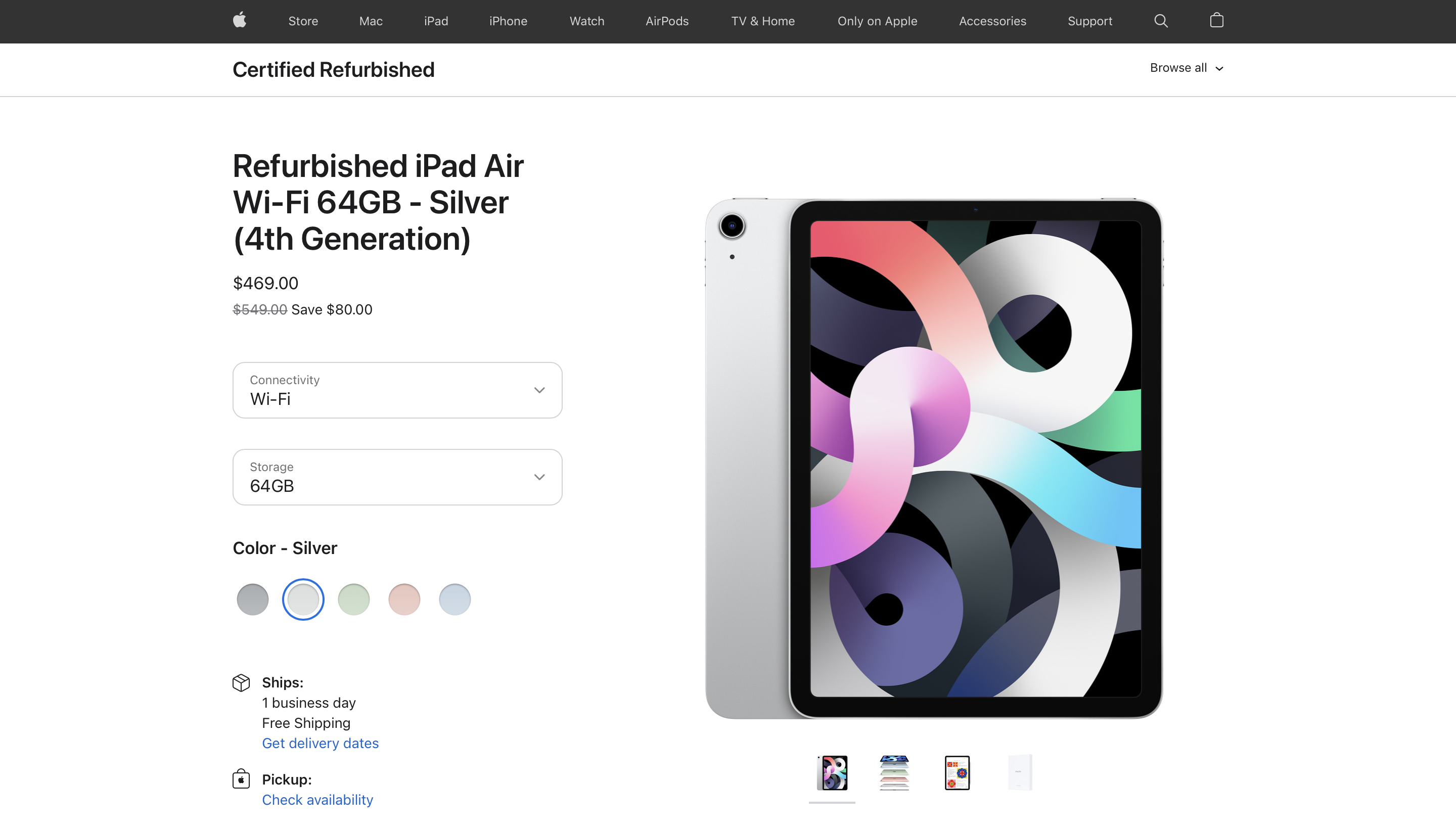 Компания Apple начала продавать на официальном сайте восстановленную модель iPad Air 4.