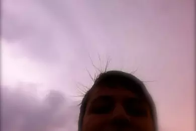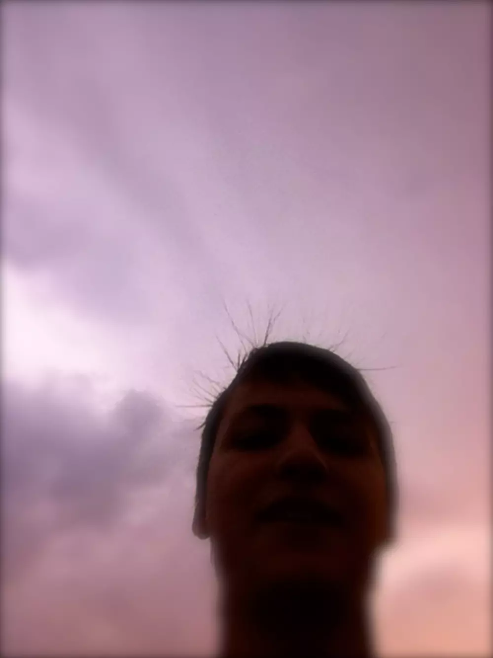 Фото сделано на пляже после дождя(возможно в море ударила молния и волосы встали дыбом)
