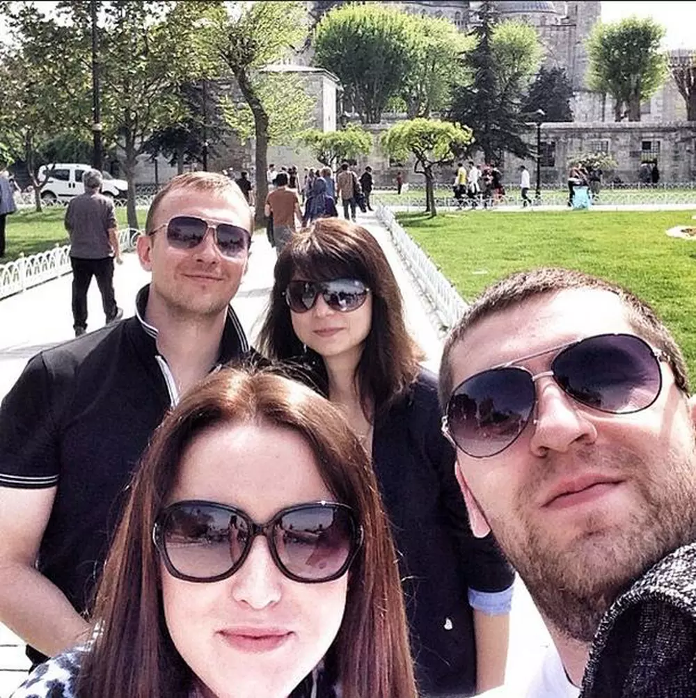 Друзі на фоні Голубої Мечеті в Стамбулі