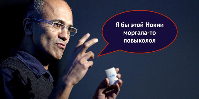 Одним из последних грандиозных «достижений» Стива Баллмера на посту исполнительного директора Microsoft была покупка подразделения Devices & Services компании Nokia. Microsoft отвалила за эти никому не нужные осколки некогда великой компании $5 млрд, плюс ещё $2.17 млрд было заплачено за пожизненную лицензию на патенты Nokia и 4-летнюю лицензию на карты HERE. В бравурном письме к сотрудникам Баллмер пообещал, что синергия Nokia и Microsoft приведёт к невиданным ранее результатам, в результате чего объединённая компания уже буквально вот-вот покажет всем конкурентам кузькину мать (в стиле товарища Хрущёва).
