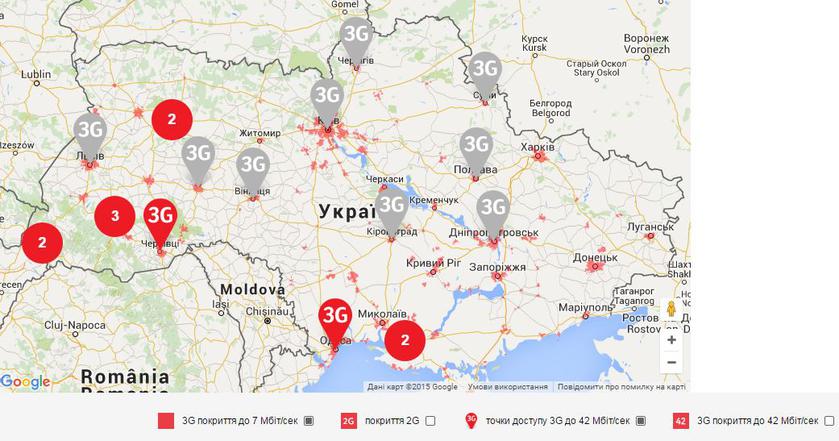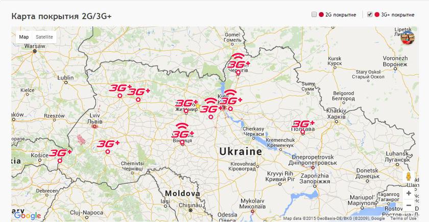 Карта покрытия 3G в Украине: осень 2015