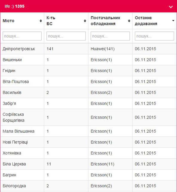 У life:) на данный момент 1395 базовых станций, что является наименьшим показателем в стране. Зато у них лицензия была самая дорогая. В последние месяцы оператор окучивает области и преимущественно небольшие города Киевской области.