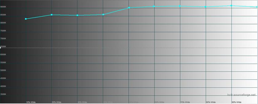 Калибровка вполне неплохая, но с привычными болезнями мобильных AMOLED-экранов: перебор с синим и гораздо шире нормального цветовой охват. Режим "Полноцветный":