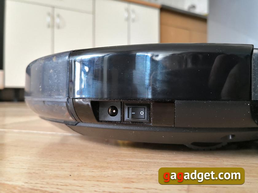 Корпус пылесоса глянцевый и маркий. В нижней части расположен выключатель и гнездо питания на случай, если нужно зарядить аккумулятор напрямую. Для этого подойдет тот же блок питания, через который подключается докинговая станция.