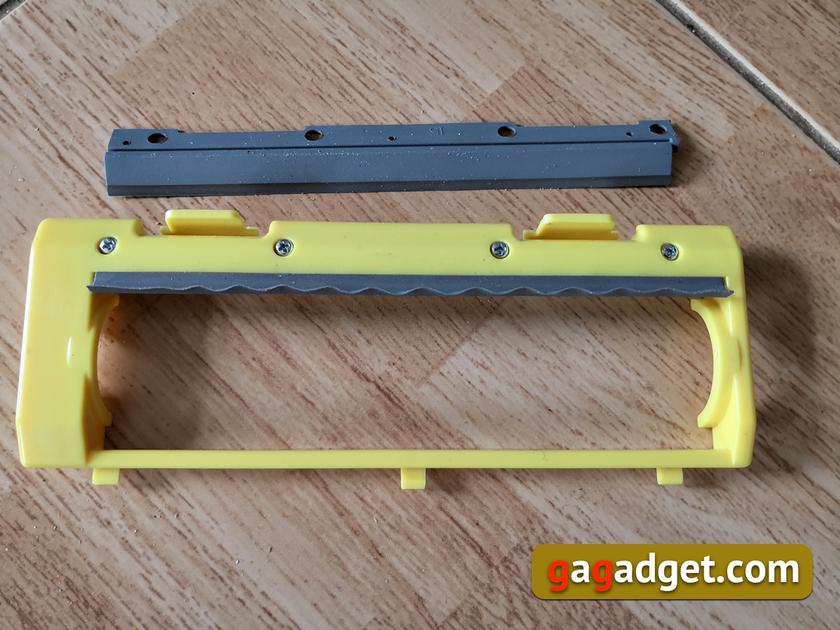 Основная щетка снимается очень легко, достаточно двумя руками отогнуть выступающие «ушки» рамки желтого цвета.
