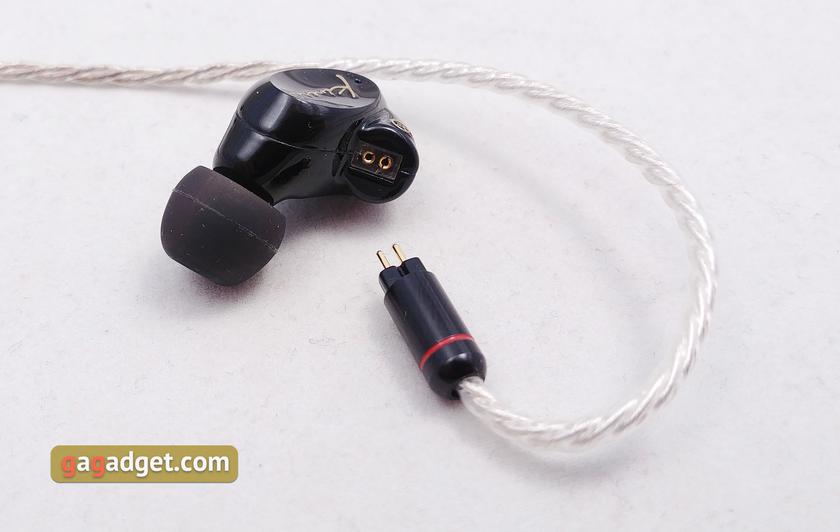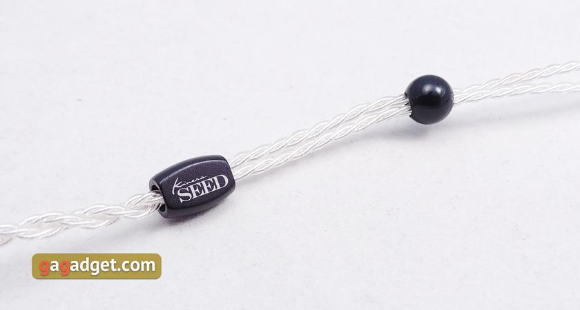 В Kinera SEED используется съёмный кабель, но вместо более привычных MMCX-коннекторов используются 0.78 2-pin. Такие же используются в FLC 8S. Прикупить сторонний кабель проблем не возникнет. Тем более, что гнёзда не слишком утоплены внутрь. На комплектном кабеле коннекторы тоже сделаны такими образом, что подойдут и к другой модели с таким разъёмом. Сразу за коннекторами — заушины в виде простой силиконовой изоляции. Так что они мягкие и податливые: