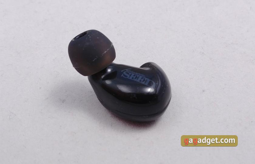 Наушники сделаны из чёрного глянцевого пластика, в природе существует ещё белый вариант. Форма максимально обтекаемая, никаких острых углов, только соединительный шов двух половинок корпуса. На внешней части — золотистая гравировка с логотипом Kinera внутри большого углубления, которое хорошо подходит для доводки наушника большим пальцем до нужного положения в ухе. Там же — небольшие компенсационные отверстия. Выше — обозначения левого и правого наушника: