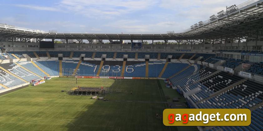 Стадион готовили к концерту Олега Винника, который должен был пройти (по факту уже прошел) в ближайшие выходные. И всю эту подготовку можно было видеть из коридора офиса.