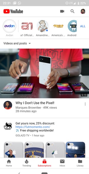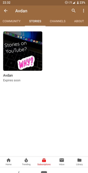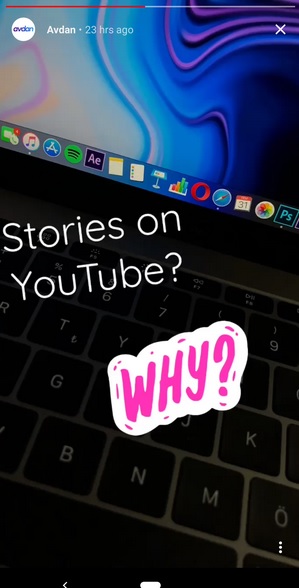 Как и в Snapchat или Instagram, когда пользователь добавляет свою «историю», его имя и фотография в интерфейсе обведены красным или синим кружком (в зависимости от главной темы). Скорее всего, «истории» в YouTube тоже через время будут самоудаляться: в основном это 24 часа, но в Instagram теперь есть Stories-архив.