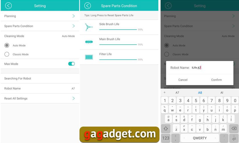 Только после этого пылесоса я понял, что единственное чего мне не хватало в предыдущих устройствах — возможности легко и быстро настроить таймер уборки (раньше нужно было долго тыкать в кнопки на корпусе или пульте дистанционного управления, теперь есть удобный визуальный инструмент) и системное время. В остальном ILIFE A7 работает примерно на том же уровне, что и его собратья. Приятно, что приложение позволяет отслеживать еще и износ щеток и основного фильтра. Отдельно стоит отметить заметно лучшую конструкцию контейнера для мусора, который теперь легче чистить и мыть (у ILIFE V8s с этим, определенно, проблемы) и выше, чем у других моделей ILIFE (во всяком случае мне так показалось) мощность всасывания. Из недостатков удивили царапины, которые появились на лицевой панели робота, несмотря на заявленную «износостойкость» глянцевого покрытия. Насколько я понял, царапины появились после уборки под кухонной мебелью, причем два предыдущих пылесоса таких повреждений не получали (А7 всего лишь на несколько миллиметров выше). Что, впрочем, мало портит впечатление от ILIFE A7 (может быть покупателям, которые остро переживают такие проблемы стоит оставить защитную предпродажную пленку на лицевой панели) — он вполне заслуживает нашей редакционной награды «мы рекомендуем».