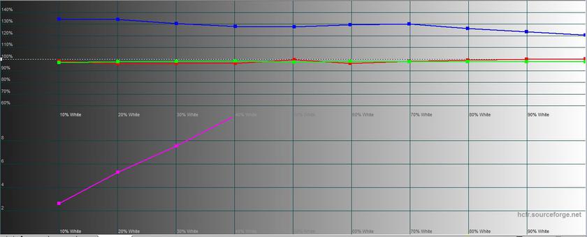 В реальной жизни изогнутость экрана немного затрудняет объективную оценку всех названных параметров. Сложно сказать, насколько точно наш колориметр выполнил свою работу, с учетом особенностей поверхности. Но в целом все сходится. Результаты измерений сильно зависят от выбранного режима изображения. В целом есть впечатление, что монитор больше любит холодные оттенки. Минимальная яркость точно соответствует заявленной. Цветовой охват особенно выдается за пределы sRGB в зеленую сторону.