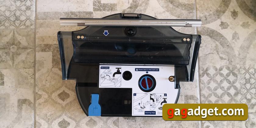 Съемный блок с контейнерами для воды выглядит сложнее, чем обычно, но на практике уход за ним прост: слить воду, открыв клапан, вытащить и прочистить губку-фильтр, размещенную под вентилятором. Разработчики пылесоса рекомендуют не просто вылить грязную воду, но и прополоскать бак, направив в него струю чистой воды из крана.