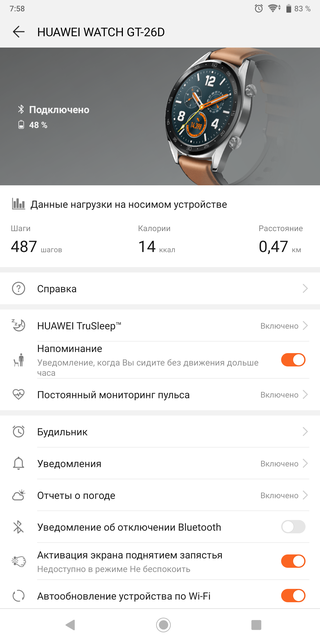 Для мониторинга сна используется разработанный в сотрудничестве с Центром изучения динамических биомаркеров Гарвардской медицинской школы алгоритм Huawei TruSleep 2.0. Утверждается, что часы очень точно мониторят различные фазы сна, его качество, после чего могут давать советы по его улучшению. Что касается будильника, то в Huawei Watch GT он мне не помог никаким образом из-за слабой вибрации. Видимо это сделано осознанно, но меня он попросту не разбудил ни разу.