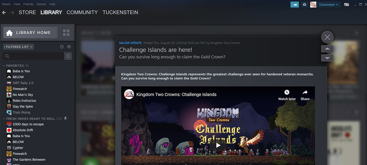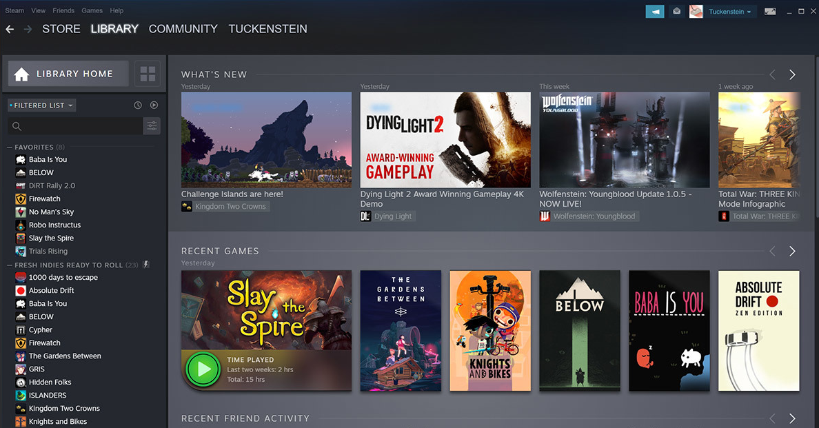 В верхней части раздела теперь показывают новости и обновления игр, которые находятся в «Библиотеке». На странице также уместились разделы для недавно запущенных или добавленных проектов, а также список всех игр. Зайдя на страницу самого проекта, геймеры теперь видят больше контента от сообщества, а также активности друзей. К тому же теперь Steam будет напоминать о выходе крупных обновлений, трансляциях от разработчиков и внутриигровых событиях.