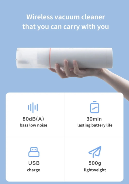 Он имеет две расцветки, компактные габариты (27.5×6×6 см) и весит всего 500 грамм. За работу пылесоса отвечает двигатель нового поколения, который делает до 45 000 об/мин с мощностью до 60 Вт. Питается он от аккумулятора на 2200 мАч. Такого объёма хватит на 30 минут работы.