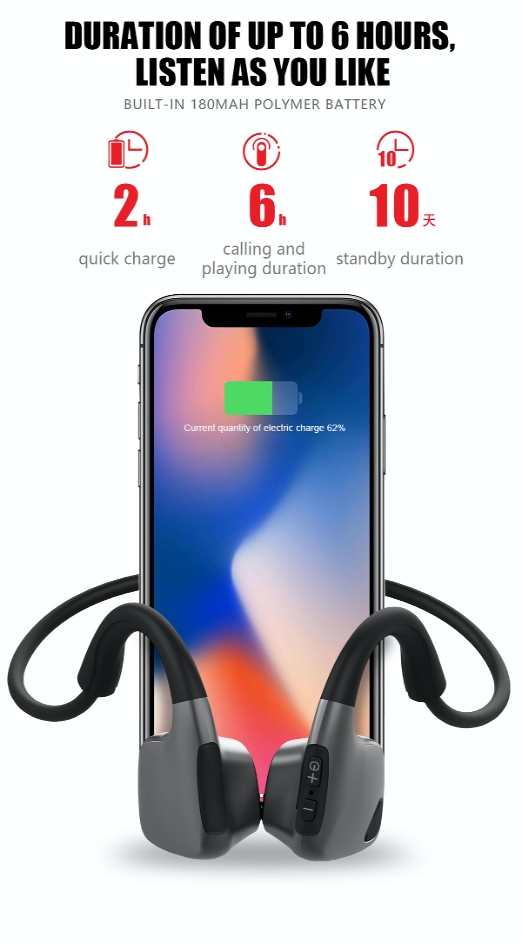 Наушники работают по принципу костной проводимости звука. То есть звук попадает в уши не через раковину, а с помощью вибраций на кости черепа. Модель также имеет Bluetooth 5.0, защиту от воды IPX5, микрофон, несколько кнопок управления, поддержку кодека aptX и аккумулятор на 180 мАч. По словам производителя, его хватит на 6 часов работы. Заряжаются наушники через порт microUSB.