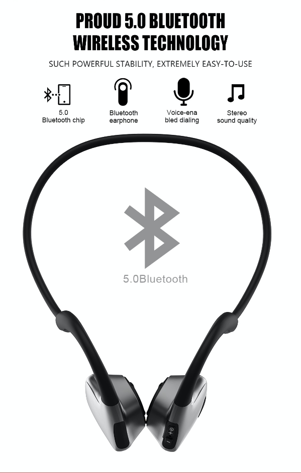 Наушники работают по принципу костной проводимости звука. То есть звук попадает в уши не через раковину, а с помощью вибраций на кости черепа. Модель также имеет Bluetooth 5.0, защиту от воды IPX5, микрофон, несколько кнопок управления, поддержку кодека aptX и аккумулятор на 180 мАч. По словам производителя, его хватит на 6 часов работы. Заряжаются наушники через порт microUSB.