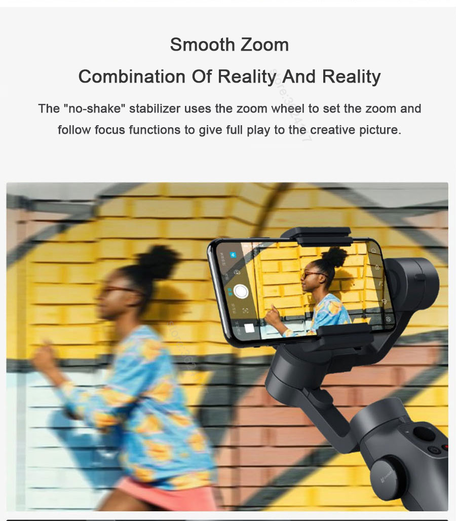 Это ручной трёхосевой стабилизатор с минималистичным внешним видом, функцией плавного зума и несколькими кнопками управления. Устройство умеет следить за лицом, поворачиваться на 360 градусов и фотографировать в нескольких режимах. Один из них — Mad Dog. Он позволяет делать чёткие снимки животных в движении.