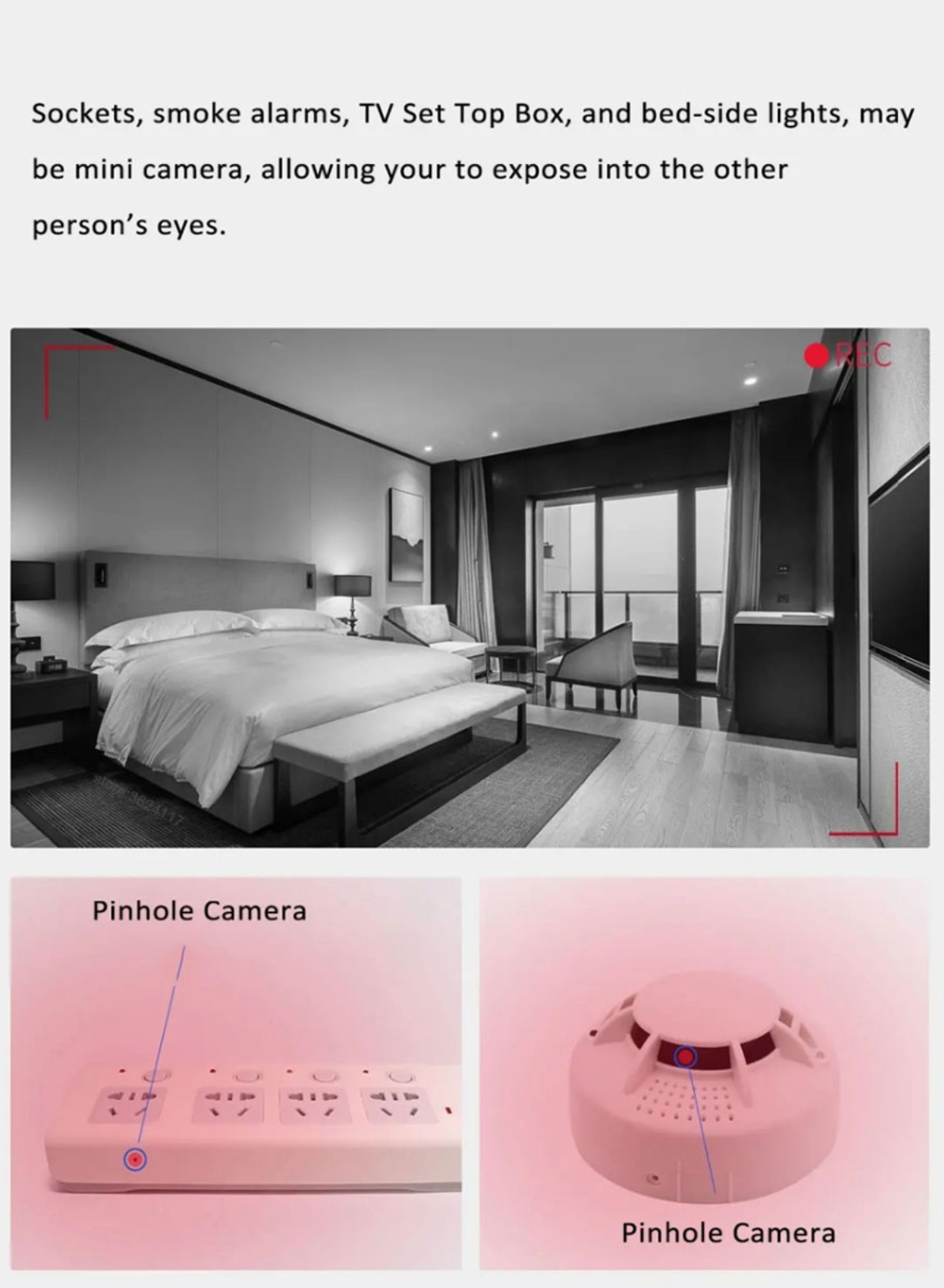Гаджет имеет компактные габариты, пластиковый корпус и специальный инфракрасный датчик, который может определить наличие шпионских камер в помещении. Работает он на расстоянии до 5 метров. При обнаружении камеры девайс начинает вибрировать, светиться или издавать специальный звук.