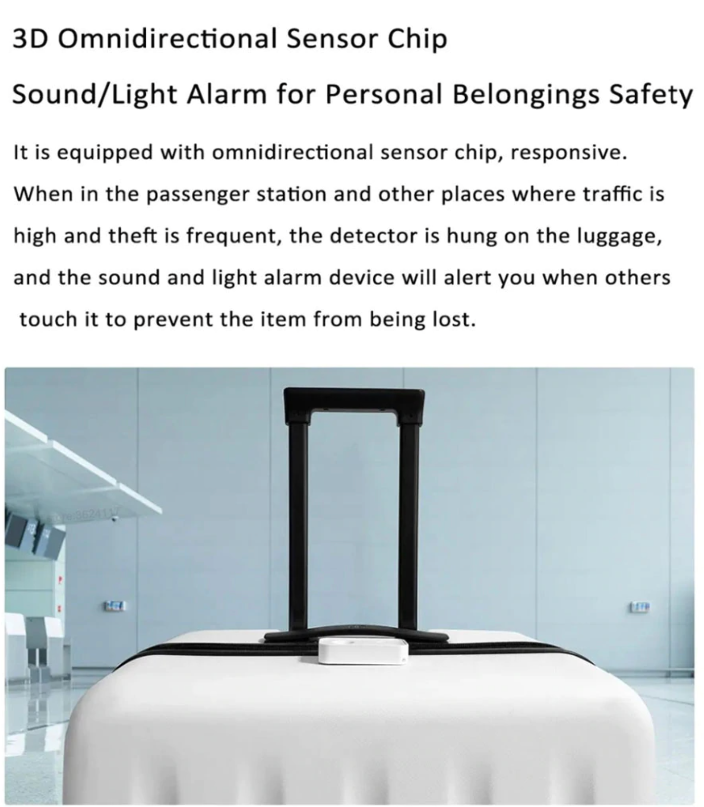 Из интересного, устройство ещё можно использовать как анти-вор для багажа. Для этого надо положить его на чемодан или в сумку и если кто-то коснётся датчика — он начнёт издавать звук.