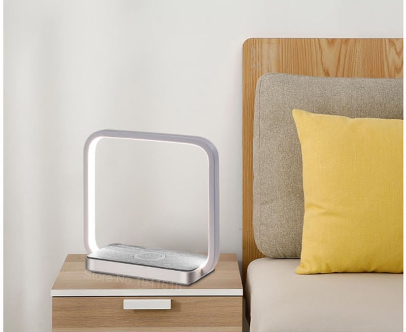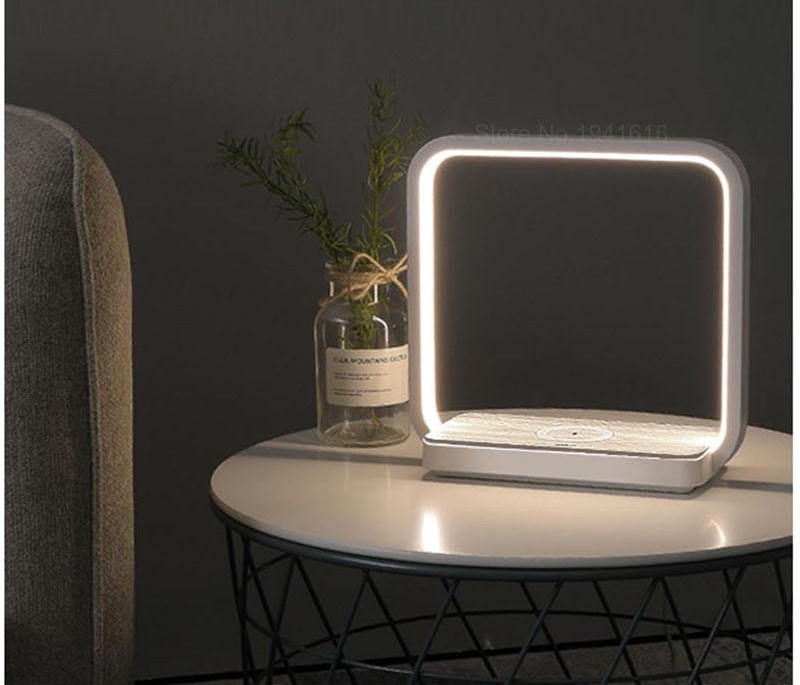 Но на самом деле это не обычная лампа, это еще и беспроводная зарядка для смартфонов. Для них предусмотрена платформа внизу, поэтому можно одновременно и гаджет заряжать, и освещать комнату. Мощность зарядки — 5 Вт.