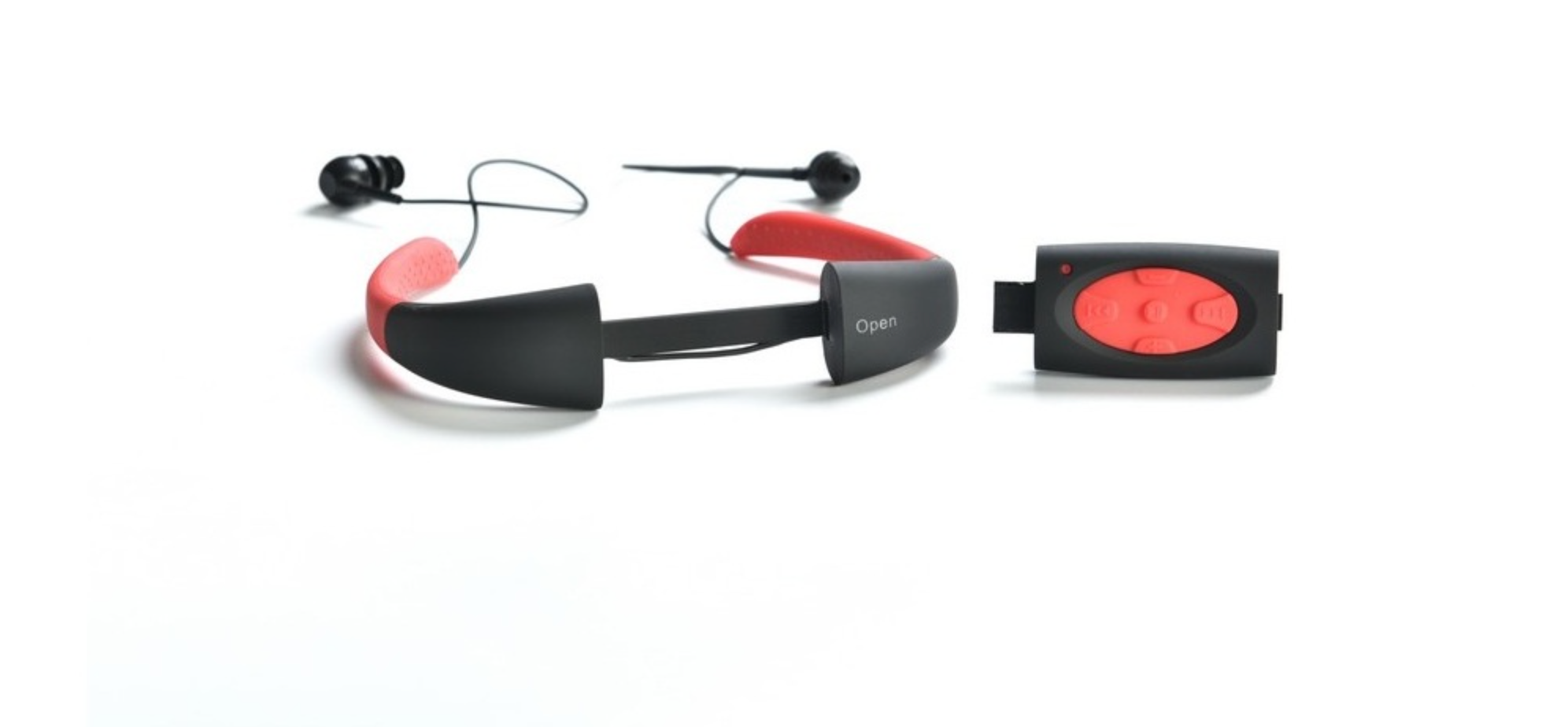 Наушники называются AINGSLIM и они ориентированы для спортсменов. Гаджет имеет U-образную конструкцию и может похвастаться встроенным плеером с двумя вариантами памяти: 4 ГБ или 8 ГБ. Расширить накопитель, к сожалению, нельзя.