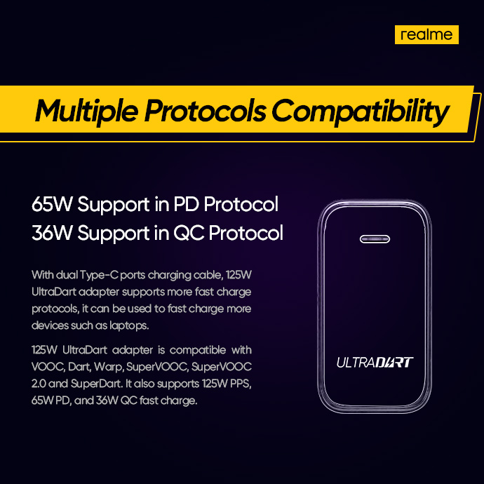 По заявлению компании, во время зарядки телефон будет нагреваться максимум до 40 градусов. Ещё заявлена обратная совместимость с протоколами PPS до 125 Вт, PD на 65 Вт и Qualcomm QC. Благодаря этому, блоком питания с UltraDart Fast Charging можно будет заряжать не только смартфоны, но и другие устройства. Например, ноутбуки.