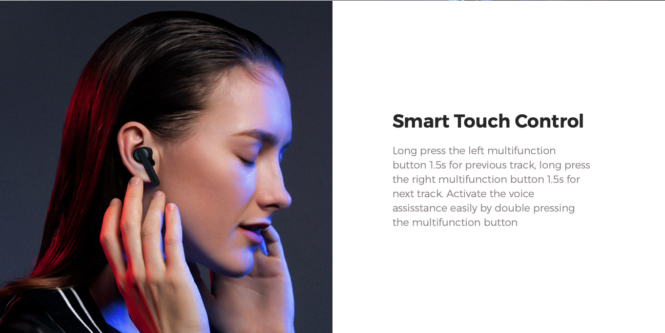 Ещё SoundPEATS Truecapsule поддерживают голосовые помощники Siri и Google Assistant, систему шумоподавления для звонков, а также сенсорное управление. Например, с помощью долгого нажатия по правому или левому наушнику можно переключать треки.