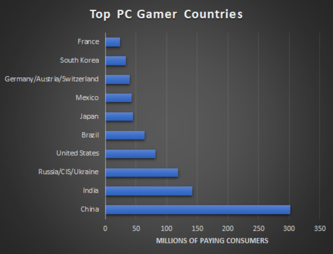 DFC Intelligence провели исследование рынка видеоигры, выяснив его масштабы. В отчете говорится, что по состоянию на 2020 год видеоиграми увлекается примерно 3.1 миллиарда человек, которые составляют 40% от населения Земли.