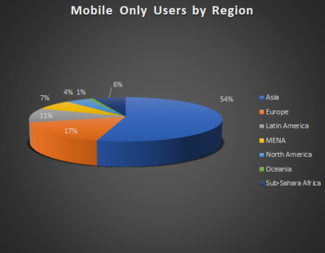 Как отмечает DFC Intelligence, половина геймеров играют исключительно на смартфонах. К тому же мобильные платформы показывают самый большой прирост аудитории. Больше половины «мобильных геймеров» находятся Азии (54%), а на втором месте по численности располагается Европа (17%).