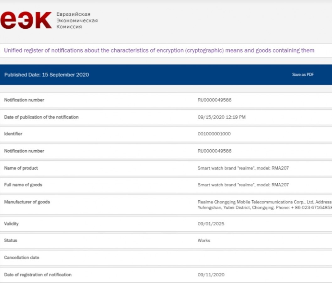 А еще часы Realme Watch S были сертифицированы SIRIM Малайзии и ЕЭС России.