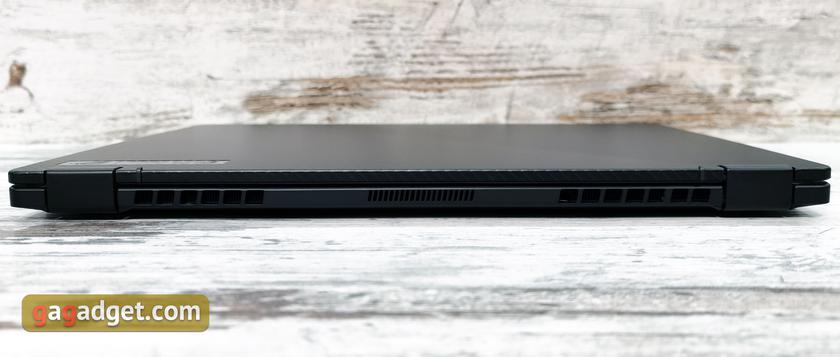 За звук отвечают четыре динамика, есть поддержка Dolby Atmos, Hi-Res Audio (HRA) и AI шумоподавление. Интерфейсы: WiFi 6 (802.11ax), Bluetooth 5.0, 1xUSB 3.2 Gen 2 Type-C (DisplayPort 1.4, Thunderbolt, PD, 3xUSB 3.2 Gen 2 Type A, HDMI 2.0b, комбинированный аудиоразъём, RJ-45, кардридер MicroSD (скорость до 312 МБ/с). Питается ноутбук от аккумулятора на 90Вт*ч. Комплектный блок питания имеет мощность 240 Вт, также есть поддержка USB-C Power Delivery 3.0 до 100 Вт. При всём этом "фарше", ноутбук получился не слишком большим: 36x26.8x2.1 см, вес — 2.4 кг.