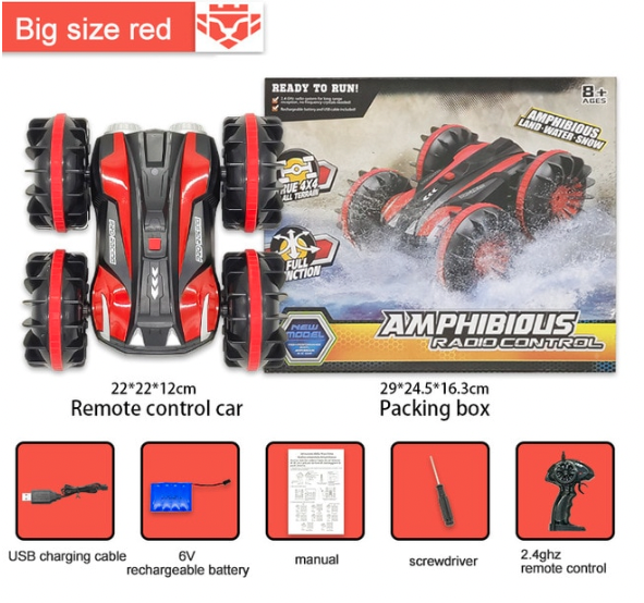 Купить Hapybas Amphibious (WDS-RCT017) можно на AliEpxress за $31 в трёх расцветках: красной, синей и зелёной. В комплекте с машинкой идёт инструкция, пульт управления 2.4 ГГц, отвёртка и USB-кабель для зарядки.