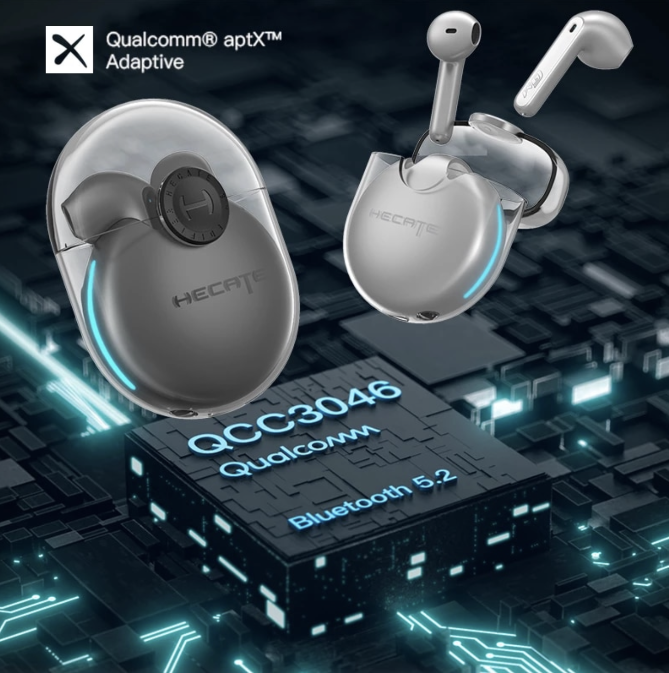 EDIFIER GM5 имеют конструкцию вкладышей и необычный прозрачный чехол. За звук в устройстве отвечают 12-миллиметровые драйверы и чип Qualcomm QCC3046. Он работает в паре с модулем Bluetooth 5.2. Наушники также поддерживают кодек aptX и игровой режим с низкой задержкой звука.