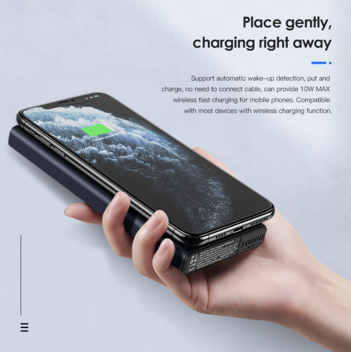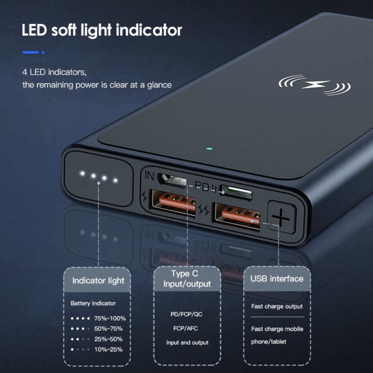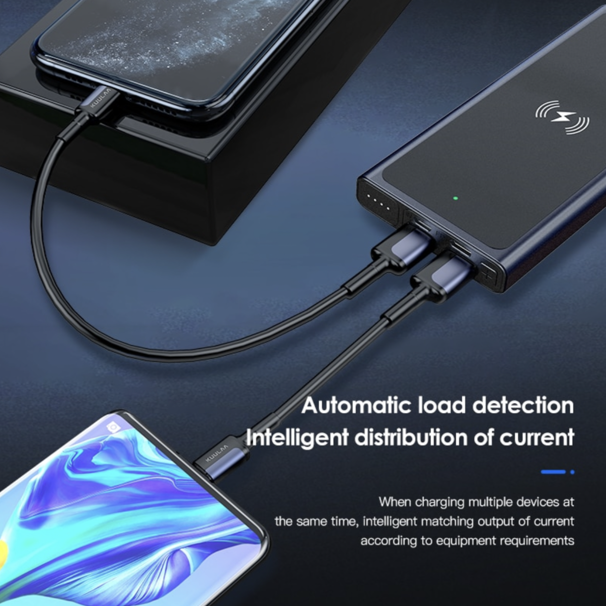 Речь идёт про аккумулятор компании KUULAA. Устройство имеет объём в 10000 мАч и может похвастаться наличием четырёх портов: один microUSB, один USB-C и два USB-A. Гаджет поддерживает протоколы Power Delivery и Quick Charge с максимальной мощностью 18 Вт на выход и выход. Кроме этого, в пауэрбанке есть также площадка для беспроводной зарядки на 10 Вт. Естественно, устройство поддерживает всевозможные протоколы защиты, включая от перегревов, скачков напряжения и т.д.