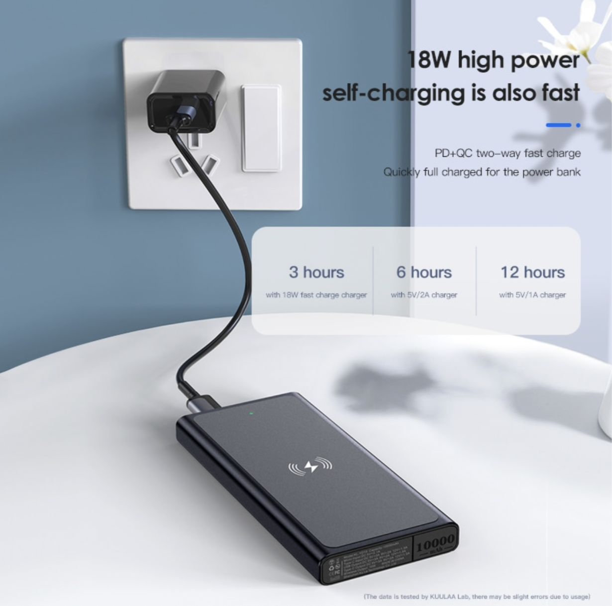 Пауэрбанк KUULAA на 10000 мАч с четырьмя портами и беспроводной зарядкой за $15