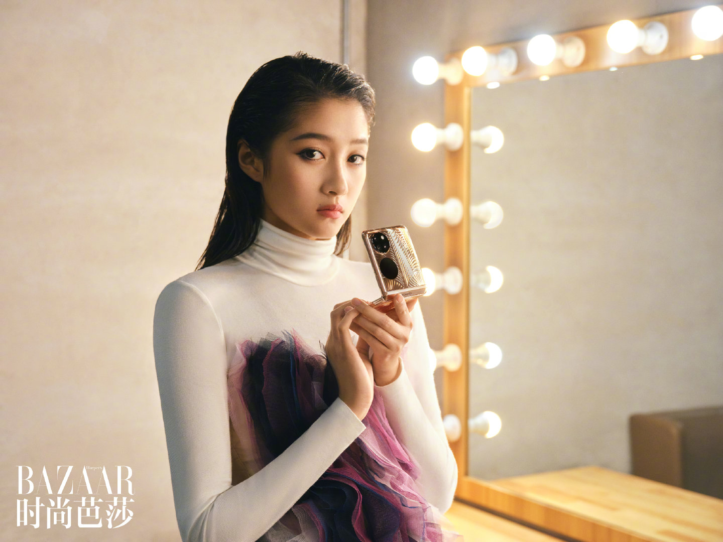 50 оттенков золотого: журнал Harper’s Bazaar опубликовал фото складного смартфона Huawei P50 Pocket
