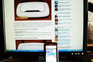 TP-Link WR841N работает в диапазоне 2.4 ГГц и поддерживает одновременно два пространственных потока (MIMO 2x2), так что теоретически макисмальная скорость соединения может достигать 300 Мбит/с. На практике даже когда роутер находился в зоне прямой видимости от ноутбука (MacBook Pro 13" — мы используем для тестов эту модель, так как она является одним из немногих ноутбуков, оснащённых адаптером Wi-Fi с поддержкой MIMO 3x3:3), максимальная скорость соединения составила 130 Мбит/с. Для сравнения, более дорогой TP-Link TL-WR1043ND в тех же условиях показывает скорость соединения в районе 180 Мбит/с.