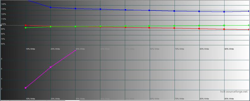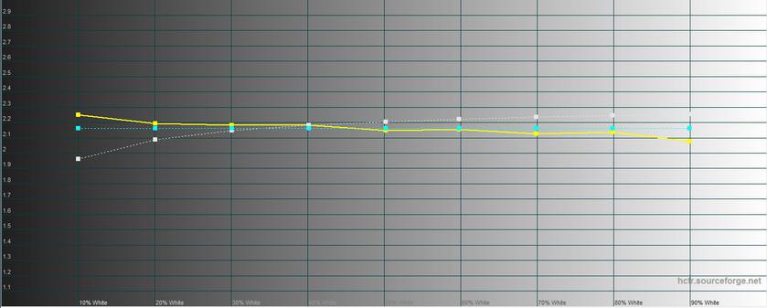 Замеры показали очень неплохие значения яркости и контрастности экрана. Максимальная яркость составила: 291.585 кд/м², яркость черного поля — 0.288 кд/м², а контрастность — 1018:1. Цветовой охват почти совпадает с sRGB, но есть переизбыток синего, в результате чего картинка немного уходит в холодные оттенки. Для игровой модели это вполне простительно.