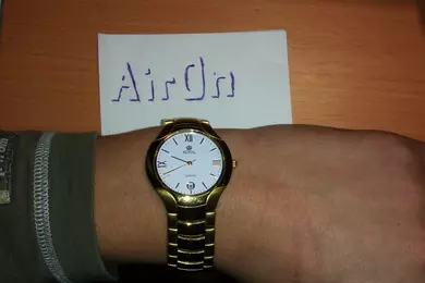 Вы можете выиграть этот часофон, если проживаете в Украине и примете участие в нашем конкурсе. Условия, как обычно, очень просты — нужно загрузить (используя кнопку ниже) фотографию своих наручных часов с нарисованным от руки текстом «AirOn» в кадре. Например, так, как это показано на фото ниже. Конкурс продлится с 8 по 21 октября (включительно), победитель будет выбран в результате честной жеребьевки. В конкурсе, традиционно, не могут принимать участие сотрудники компании «Магнет» и их родственники. От одного участника принимается только одно фото.