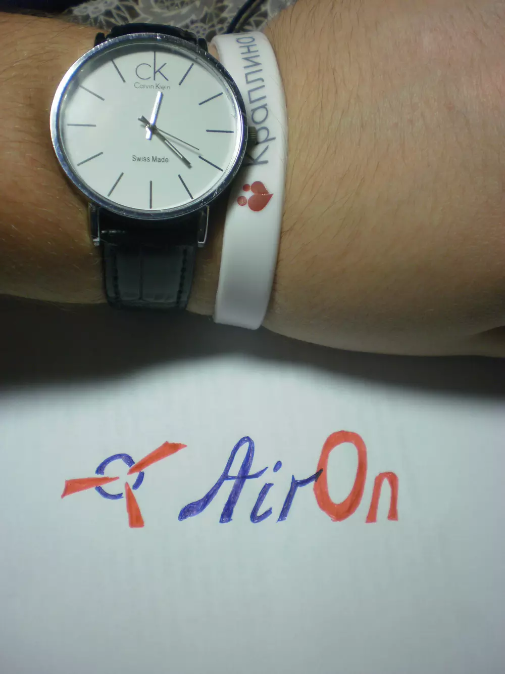 Вы можете выиграть этот часофон, если проживаете в Украине и примете участие в нашем конкурсе. Условия, как обычно, очень просты — нужно загрузить (используя кнопку ниже) фотографию своих наручных часов с нарисованным от руки текстом «AirOn» в кадре. Например, так, как это показано на фото ниже. Конкурс продлится с 8 по 21 октября (включительно), победитель будет выбран в результате честной жеребьевки. В конкурсе, традиционно, не могут принимать участие сотрудники компании «Магнет» и их родственники. От одного участника принимается только одно фото.
