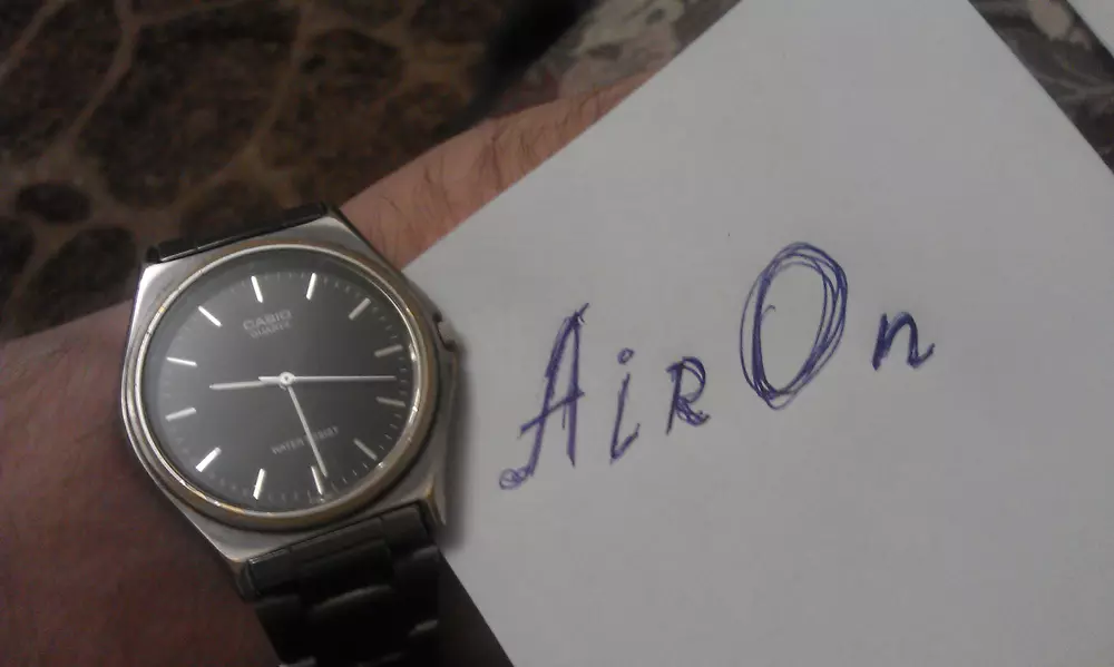 Вы можете выиграть этот часофон, если проживаете в Украине и примете участие в нашем конкурсе. Условия, как обычно, очень просты — нужно загрузить (используя кнопку ниже) фотографию своих наручных часов с нарисованным от руки текстом «AirOn» в кадре. Например, так, как это показано на фото ниже. Конкурс продлится с 8 по 21 октября (включительно), победитель будет выбран в результате честной жеребьевки. В конкурсе, традиционно, не могут принимать участие сотрудники компании «Магнет» и их родственники. От одного участника принимается только одно фото.