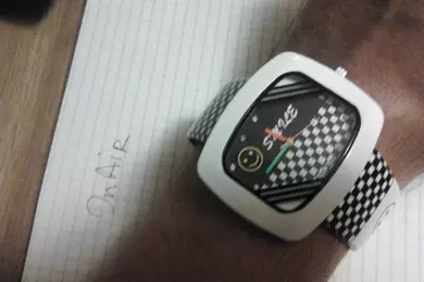 К счастью, перед нами уже не то металлическое монстрообразное устройство, что предстало пред наши очи год назад в виде AirOn Alpha. Нет, перед нами вполне аккуратный, приятный на вид аксессуар размером и толщиной немногим больше среднестатистических мужских часов. Восьмиугольная форма окантовки, металлический корпус, прорезиненный ремешок белого цвета — все это вписывается в рамки традиций для электронных ходиков.