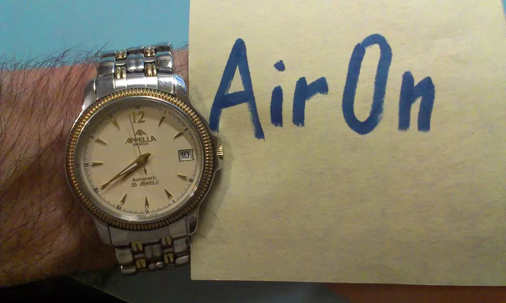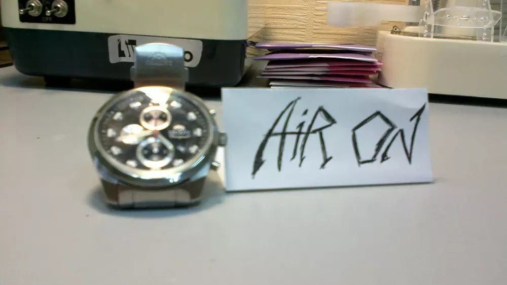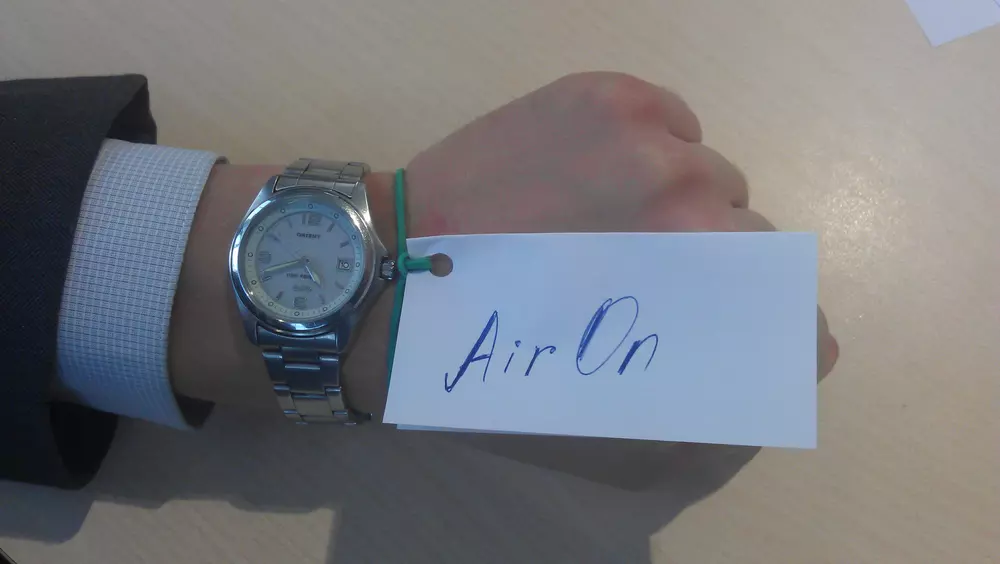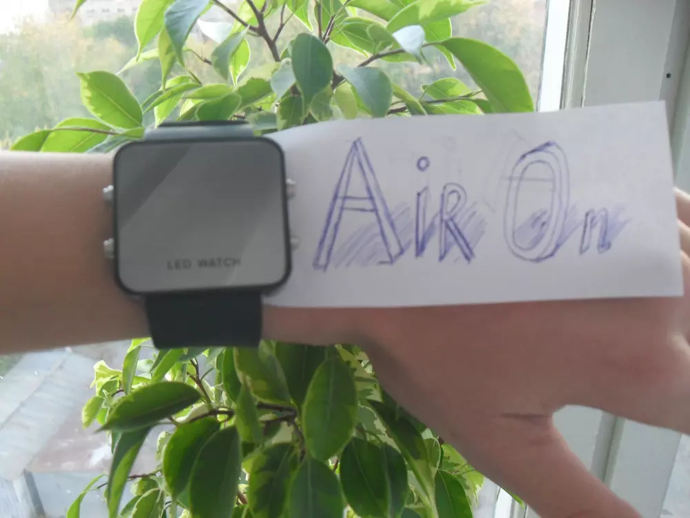 Вы можете выиграть этот часофон, если проживаете в Украине и примете участие в нашем конкурсе. Условия, как обычно, очень просты — нужно загрузить (используя кнопку ниже) фотографию своих наручных часов с нарисованным от руки текстом «AirOn» в кадре. Например, так, как это показано на фото ниже. Конкурс продлится с 8 по 21 октября (включительно), победитель будет выбран в результате честной жеребьевки. В конкурсе, традиционно, не могут принимать участие сотрудники компании «Магнет» и их родственники. От одного участника принимается только одно фото.